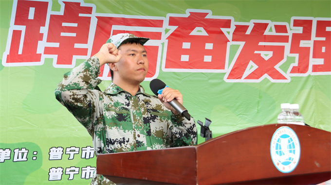 2023级人文学院学前教育专业朱银裕作为新生代表发言。朱银裕同学表示,从今天开始,我们的青春梦想,将在潮院启航。在最美好的青春年华里相遇,我们会把军训作为一个起点,以昂扬的面貌面对崭新的开始,积极向上,努力学习,勇于拼搏,团结互助,为梦奋斗,不负芳华。