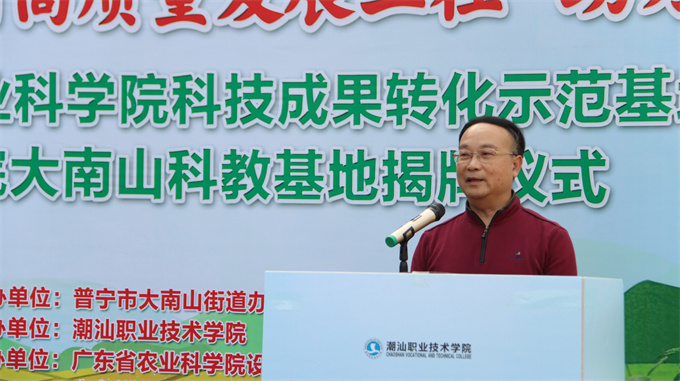 12月29日下午,潮汕职业技术学院、普宁市大南山街道和广东裕业农业发展有限公司举行广东省农业科学院科技成果转化示范基地暨潮汕学院大南山科教基地揭牌仪式。