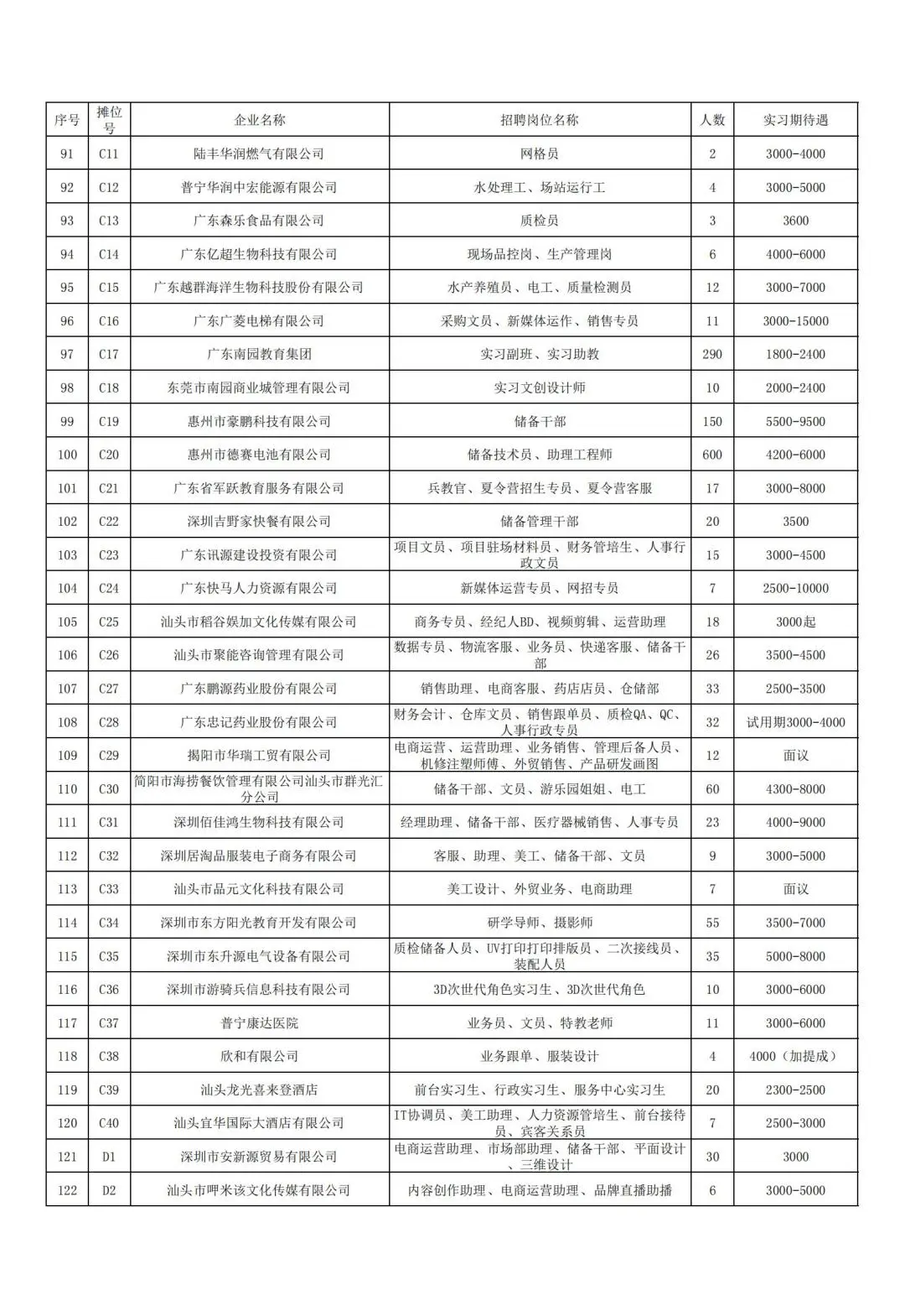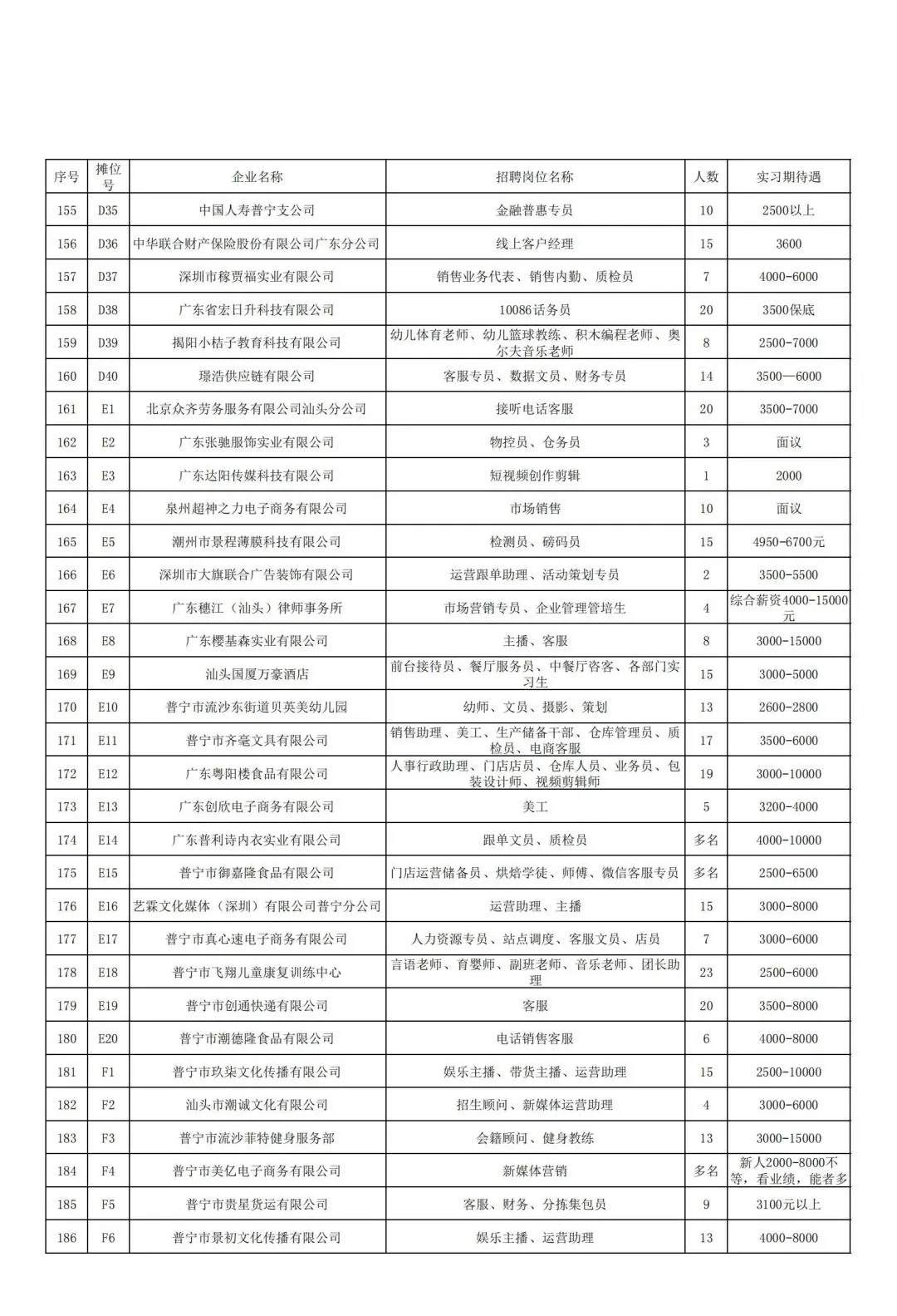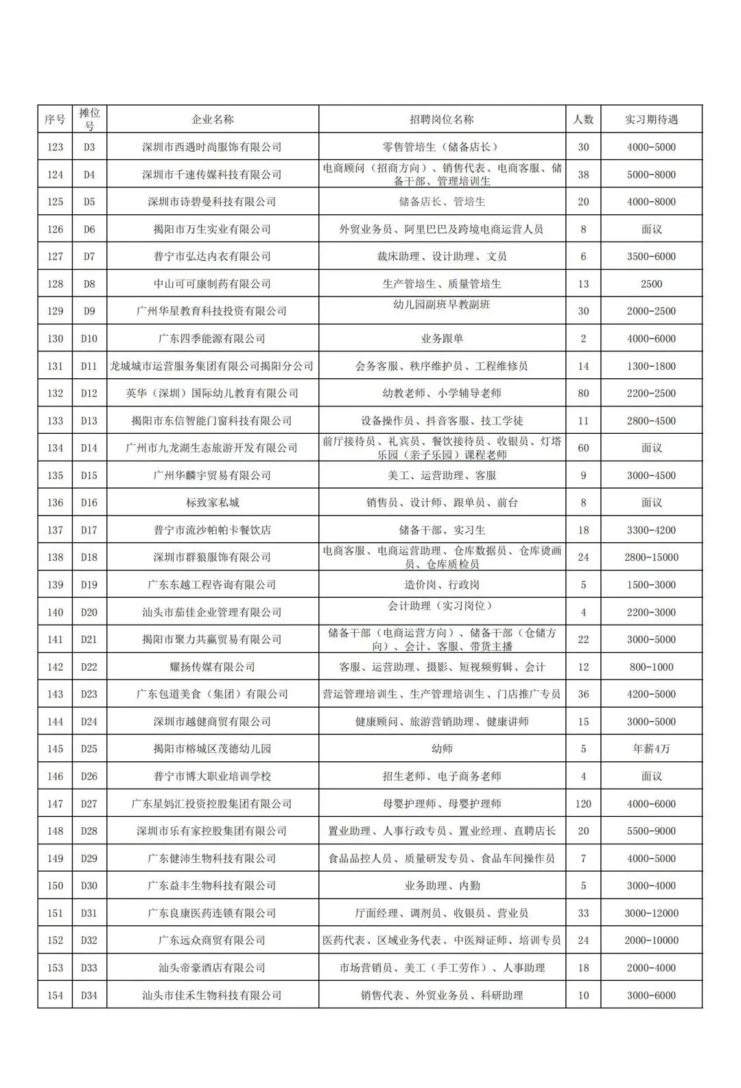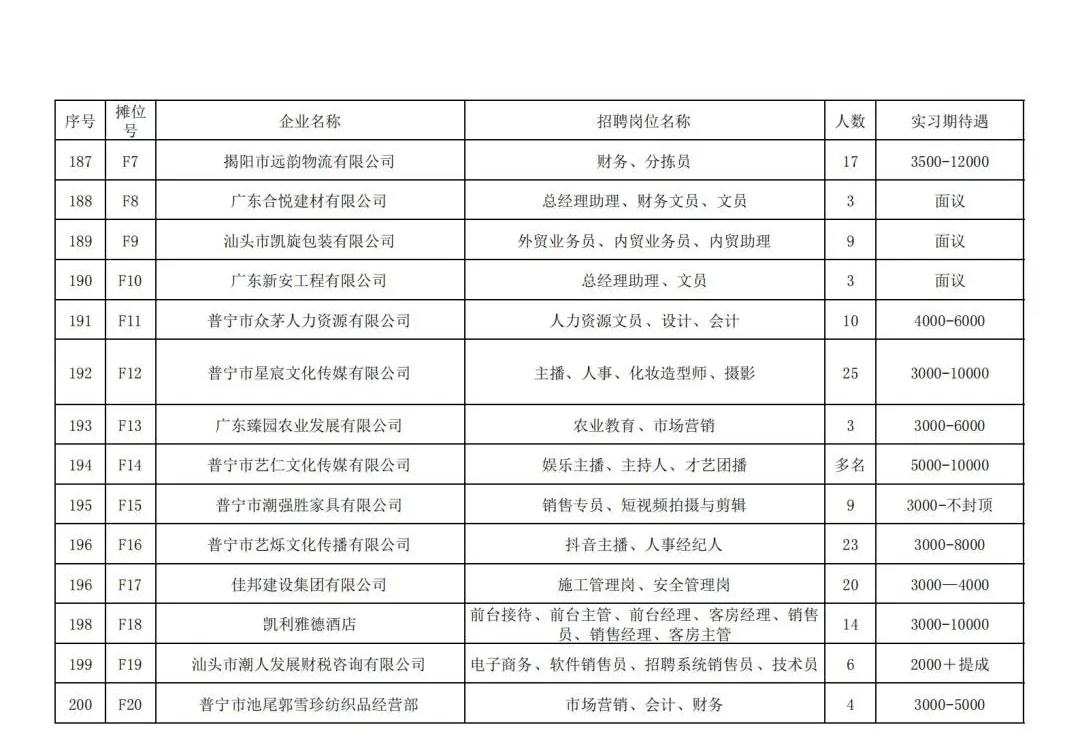 本次招聘会企业信息一览表